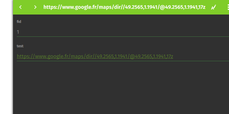 J’utilise celle ci, la capture d’avant a été pris via Qgis sur mon PC et non Qfield car je ne sais pas comment sur Qfield paramétré pour avoir des lien URL
